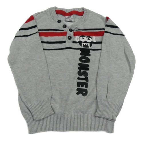 Sivo-čierno-červený sveter s pruhmi a príšerkou Kiki&Koko