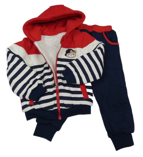 2 set - Bielo-tmavomodro-červená pruhovaná zateplená mikina s kapucí + zateplené tepláky