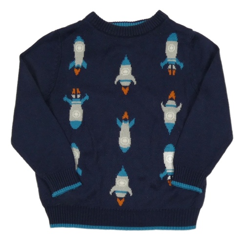 Tmavomodro-modrozelený pletený sveter s raketami M&Co
