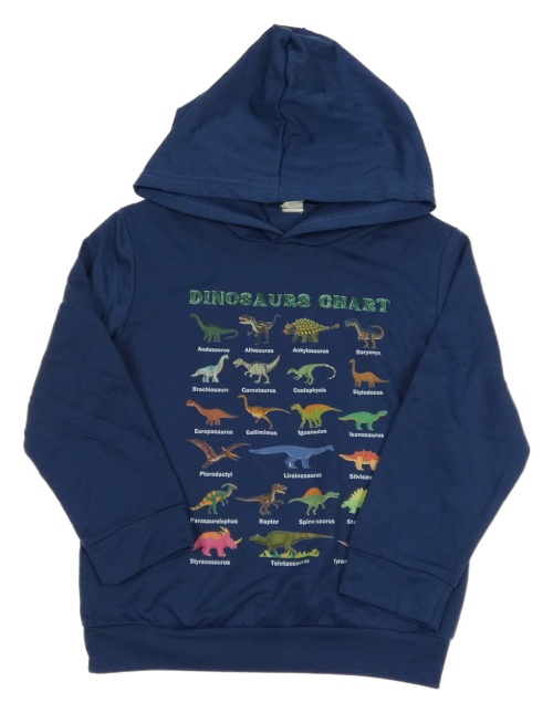 Tmavomodrá ľahká mikina s dinosaurami a kapucňou