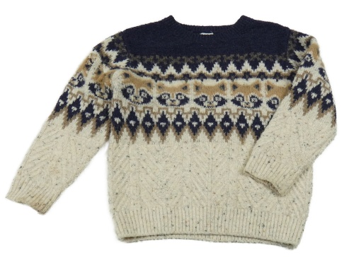 Smetanovo-hnedo-tmavomodrý melírovaný sveter s mývaly a vzorom F&F