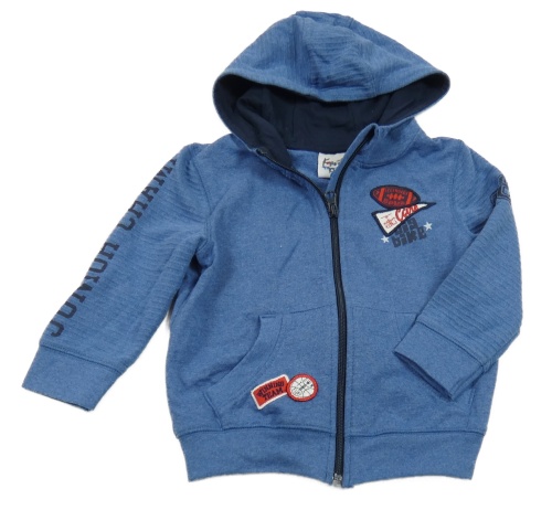 Modrá prepínaci mikina s nášivkami a kapucňou Topolino