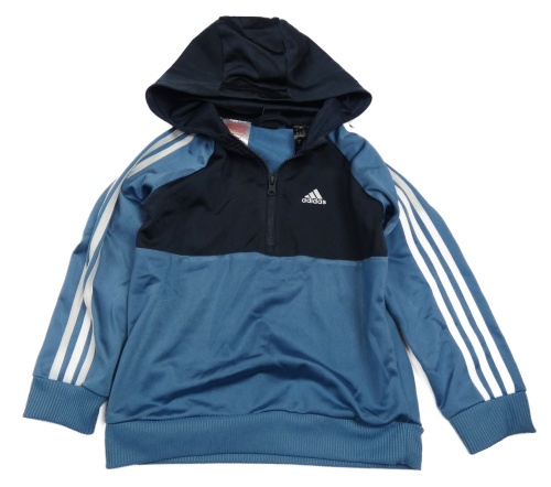 Modro-tmavomodrá športová funkčná mikina s logom a kapuíc Adidas