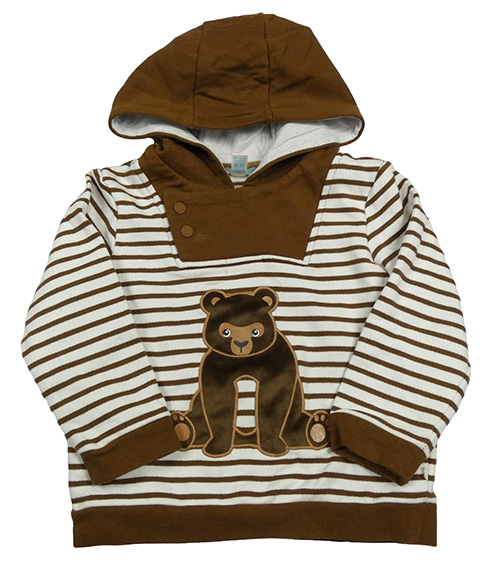 Hnedo-biela pruhovaná mikina s medvěďom a kapucňou Obaibi