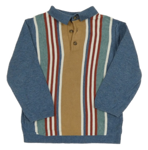 Modro-béžovo-zelený sveter s pruhmi a golierikom Next