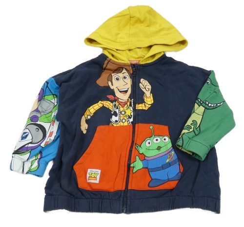 Tmavomodro/zeleno-modrá prepínaci oversize mikina s Toy Story a kapucňou George