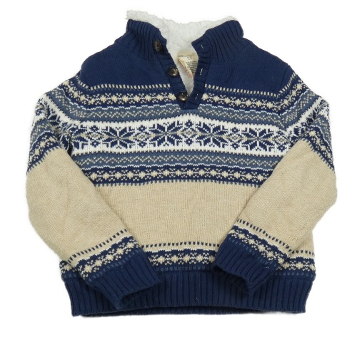 Tmavomodro-béžovo-biely vzorovaný zateplený sveter Rorie Whelan