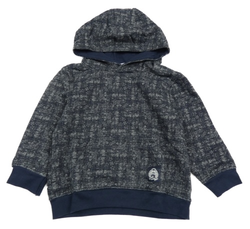 Tmavomodro-sivá melírovaná/vzorovaná mikina s nášivkou a vreckom a kapucňou Topolino