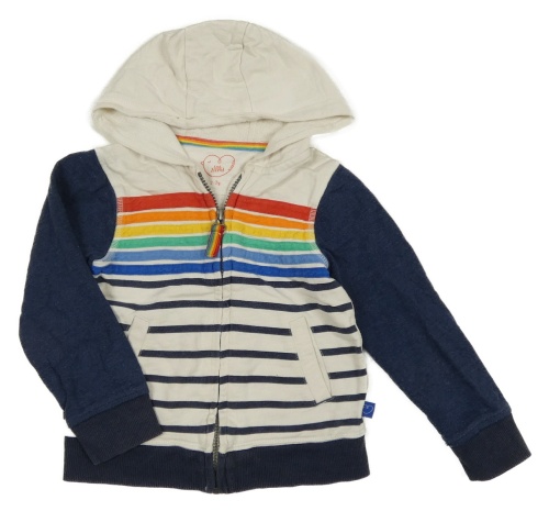 Bielo-tmavomodro-farebná pruhovaná melírovaná prepínaci mikina s kapucňou Mothercare