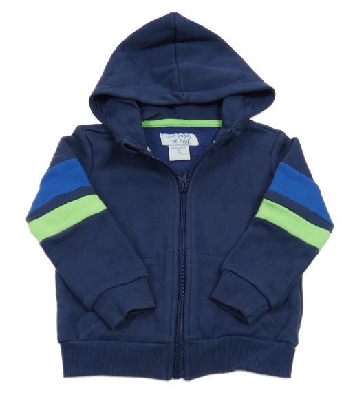 Tmavomodrá prepínaci mikina s pruhy na rukávech a kapucňou