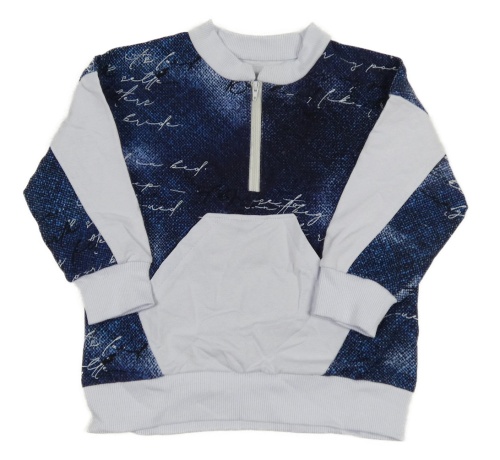 Tmavomodro-biela vzorovaná mikina s nápismi