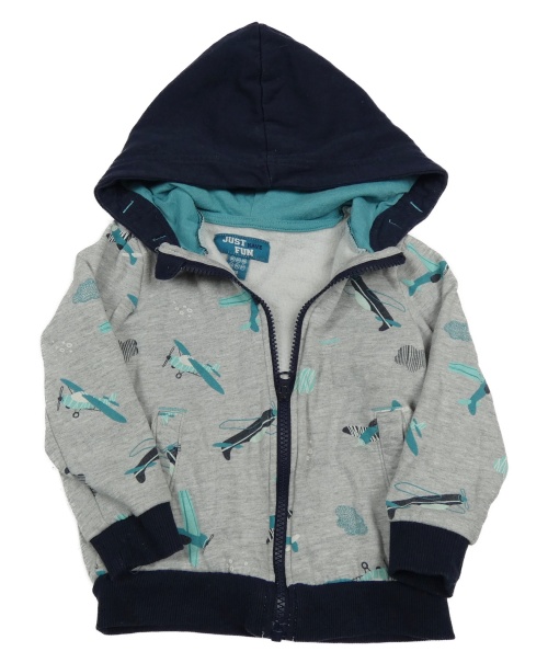 Sivo-tmavomodrá prepínaci mikina s lietadly a kapucňou Pocopiano
