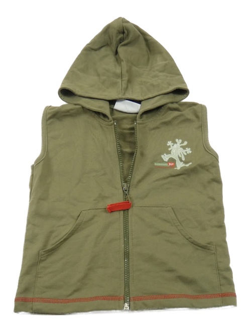 Khaki tepláková prepínaci vesta s potlačou a kapucňou