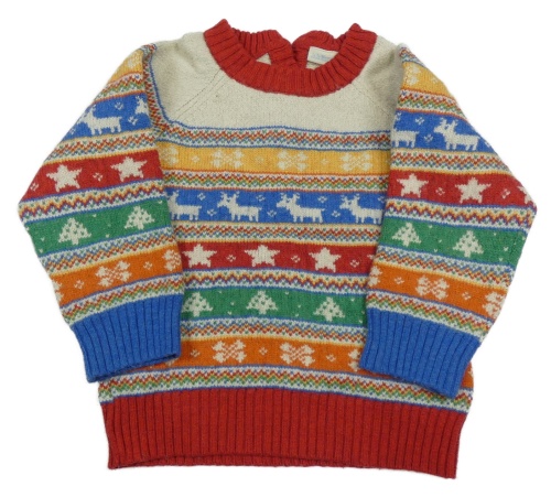 Smetanovo-červeno-farebný vzorovaný vlnený sveter Jojo Maman Bébé