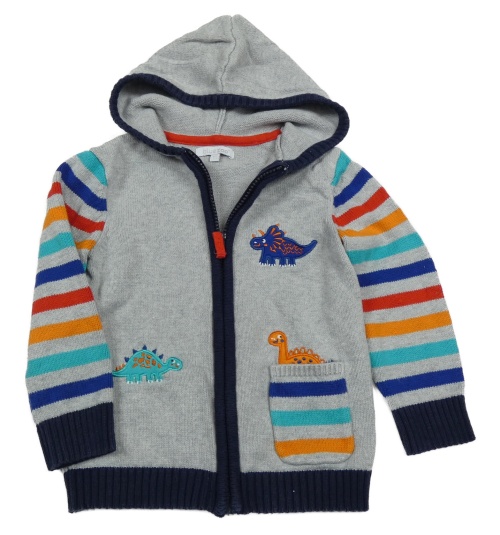 Sivo-pruhovaný prepínaci sveter s dinosaurami a kapucňou Bluezoo