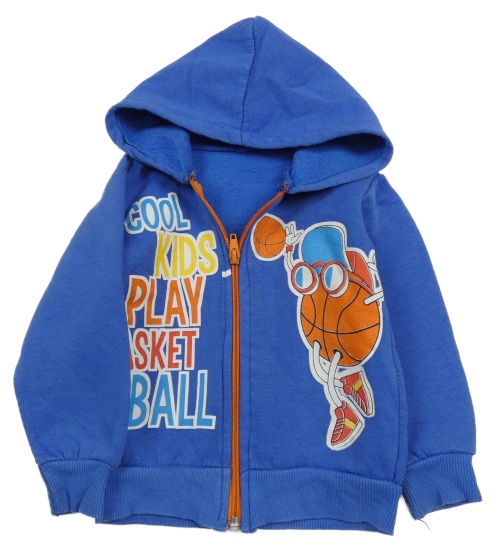 Cobaltovoě modrá prepínaci mikina s nápismi a loptou a kapucňou