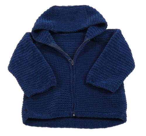 Tmavomodrý vzorovaný žinylkový prepínaci sveter s kapucňou