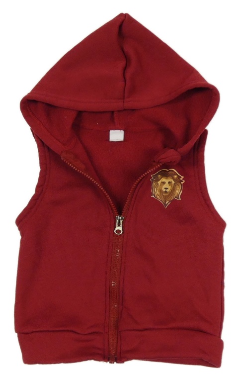Vínová tepláková vesta s lvem a kapucňou