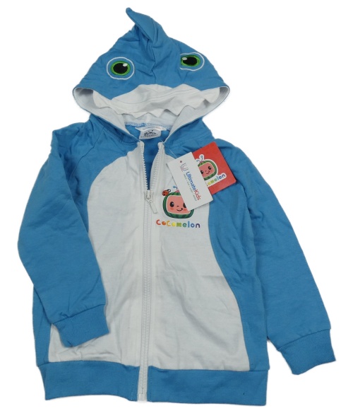 Nové - Modro-biela prepínaci mikina s kapucí - žralok - Cocomelon