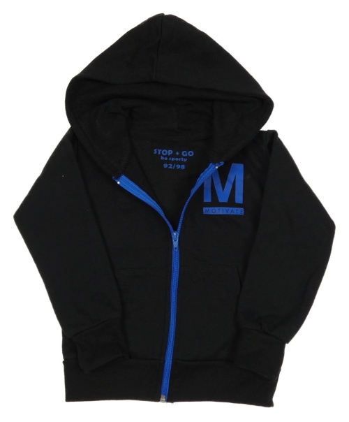 Čierna prepínaci mikina s modrým zipsom a kapucňou