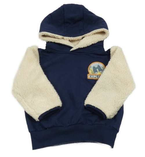 Tmavomodro-béžová teplákovo/chlupatá mikina s dalekohledem a kapucňou Kiki&Koko