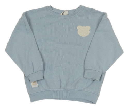 Svetlomodrá rebrovaná oversize mikina s medvedíkom so cute