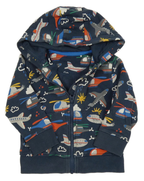 Tmavomodrá prepínaci mikina s lietadly a kapucňou Miniclub