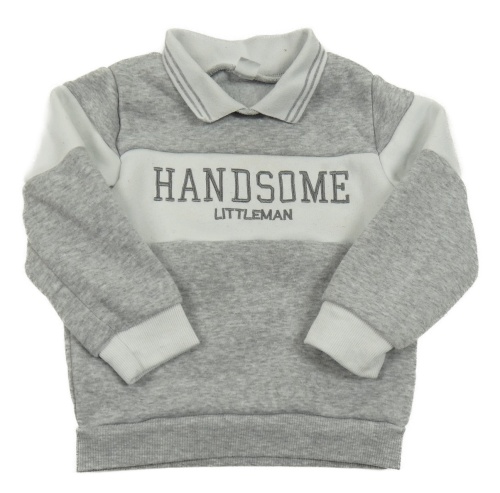 Sivo-biela mikina s nápisom a golierikom