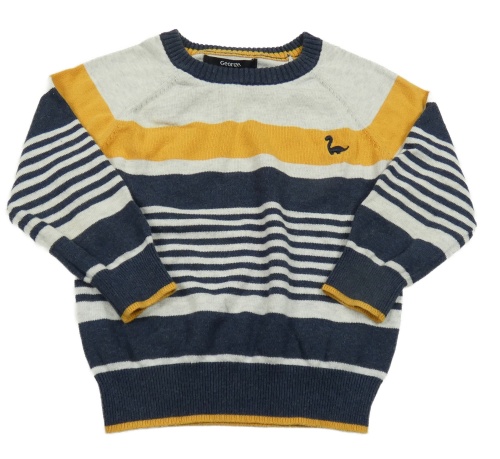 Sivo-modro-horčicový pruhovaný sveter s dinosaurom George