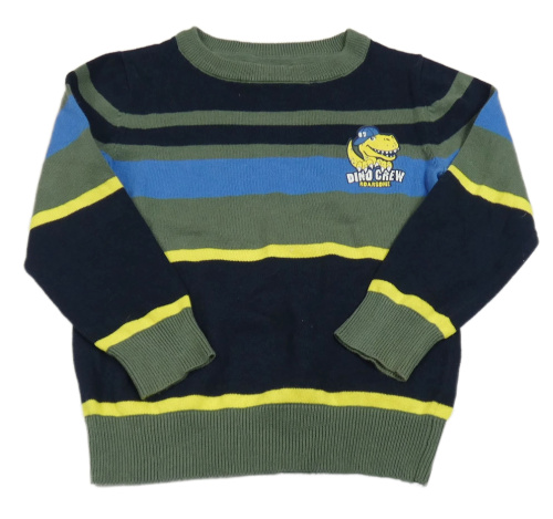 Kaki-tmavomodro-žltý pruhovaný sveter s dinem