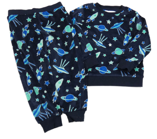 Tmavomodré plyšové pyžama s vesmírom F&F