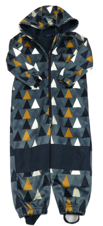 Sivo-tmavomodro-smetanovo-horčicová vzorovaná softshellová kombinéza s kapucňou Lupilu