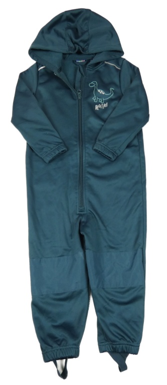 Zeleno-petrolejový softshellový overal s dinosaurom a kapucňou Lupilu