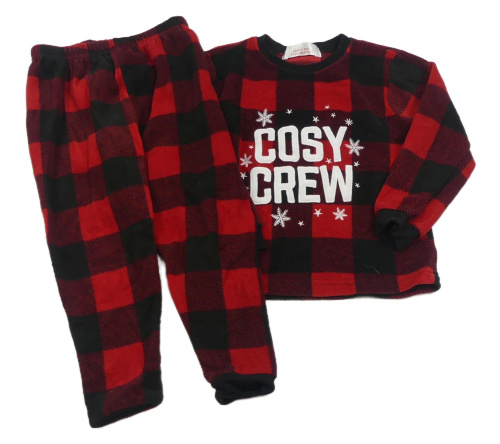 Červeno-čierne kockované fleecové pyžama s nápisom