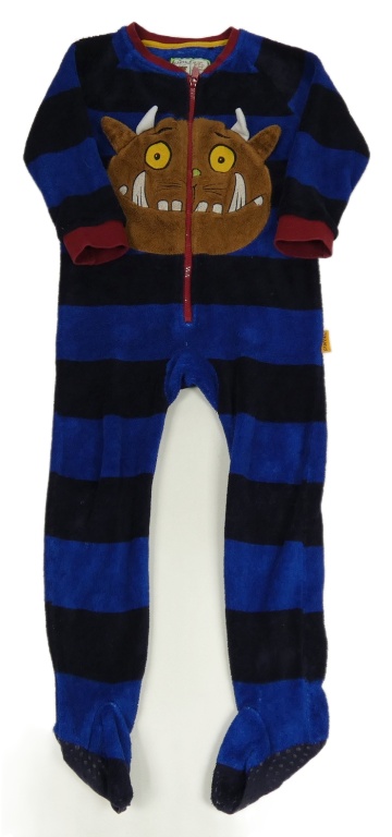 Tmavomodro-modrý pruhovaný chlpatý overal s Gruffalem Tu