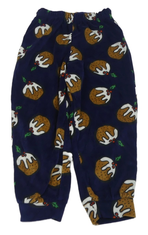 Tmavomodré plyšové pyžamové nohavice s pudinky Tu