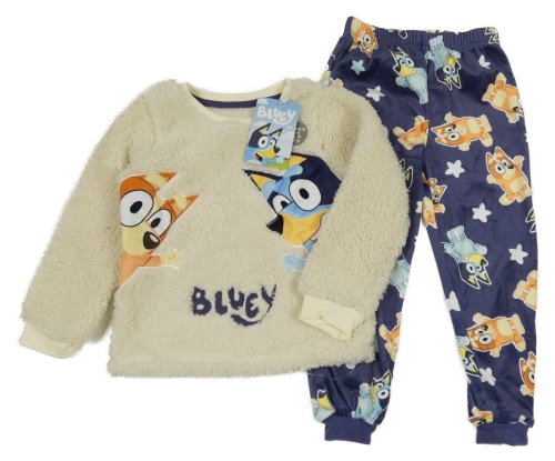 Nové - Béžovo-tmavomodré chlupato/plyšové pyžama s Bluey Nutmeg