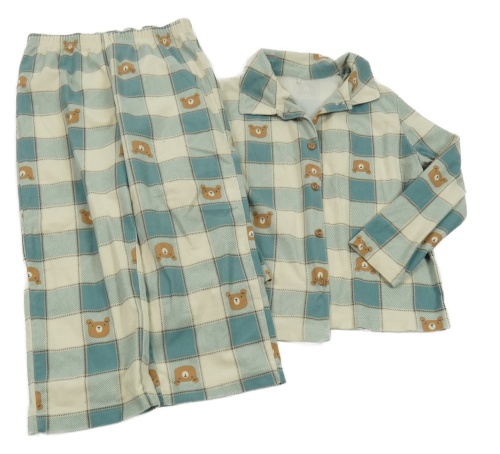 Smetanovo-šalvějové kockované pyžama s medvedíkmi George