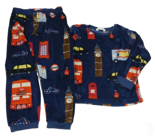 Tmavomodré plyšové pyžama s obrázky - Londýn M&S