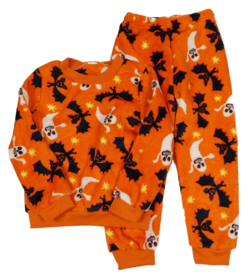 Oranžové chlpaté pyžama s duchy a netopýry