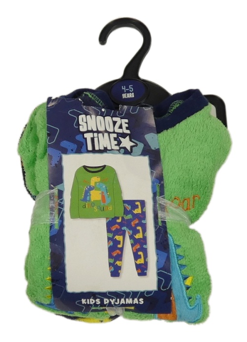 Nové - Zeleno-tmavomodré chlpaté pyžama s dinosaurami
