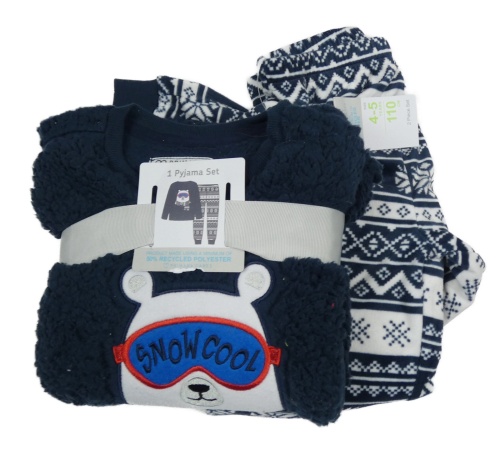 Nové - tmavomodro-biele vzorované plyšové/huňaté pyžama s medvěďom Primark