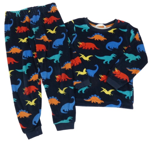 Tmavomodré plyšové pyžama s farebnymi dinosaurami M&S