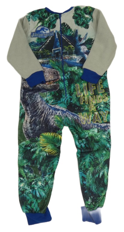 Zelenošedo-zelený fleecový overal s dinosaury - Jurský svět