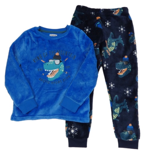 Azurovo-tmavomodré chlpaté pyžama s dinosaurami