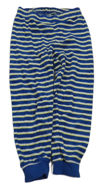 Safírovo-bielo-žlté pruhované zamatové pyžamové nohavice Pocopiano