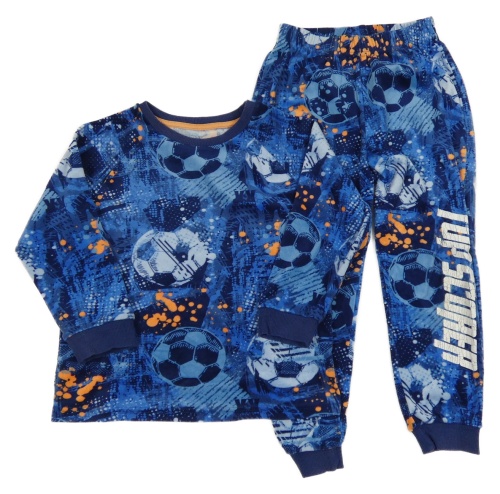 Modré vzorované plyšové pyžama s futbalovymi loptami Matalan