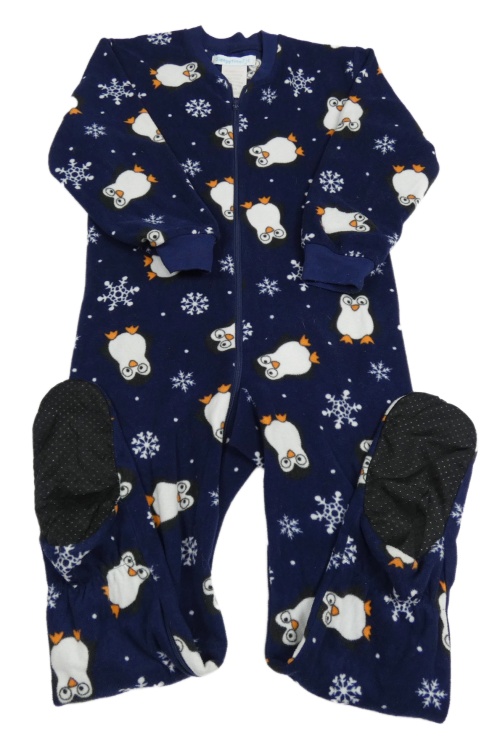 Tmavomodrý fleecový pyžamový overal s tučňáky
