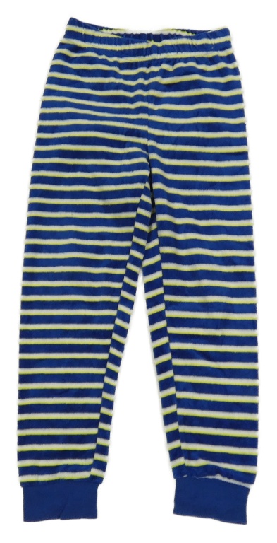 Tmavomodro-bielo-žlté pruhované zamatové pyžamové nohavice Impidimpi