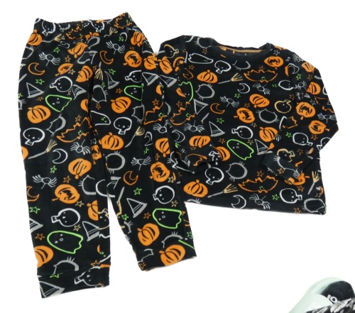Čierne plyšové pyžama s dýněmi Nutmeg